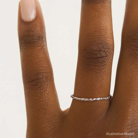 The intertwined ring is unique and beautiful . I usually wear 2 rings on my right hand, however this ring really stands out and looks great on just one finger although it also look great with other rings. I have matching earrings and have the matching necklace. All beautiful pieces! Looks great for dress up or with my usual jeans and casual wear.