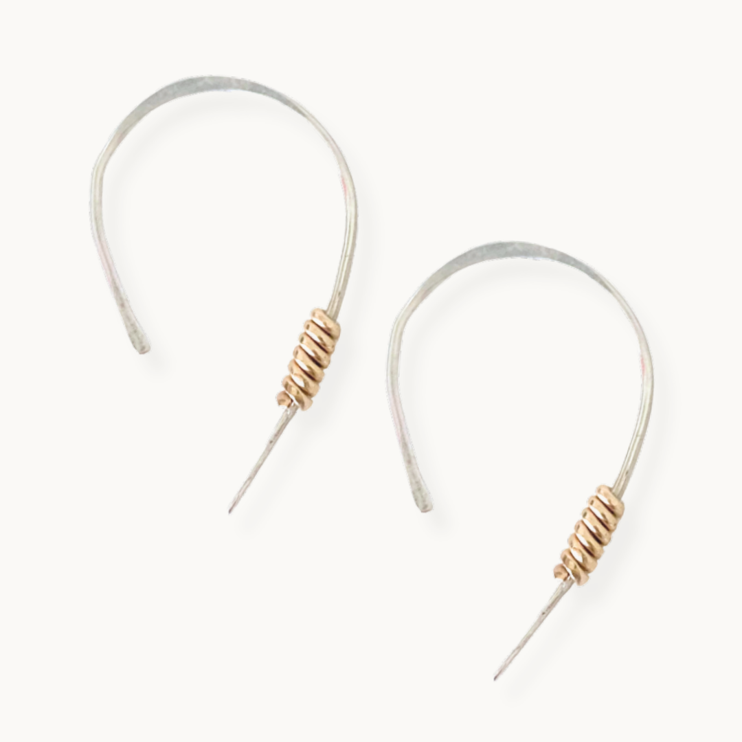 - Metals: Sterling Silver ear threaders with 14k gold-filled twist